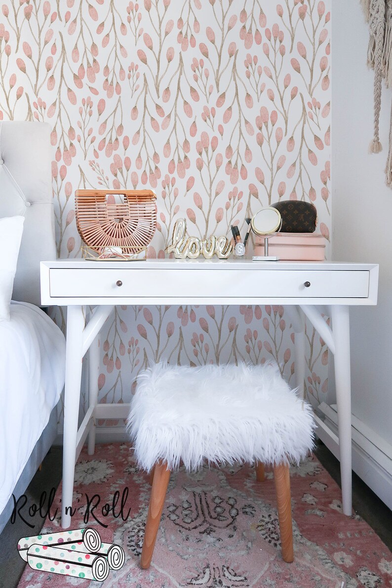 Watercolor Floral Wallpaper Pink Flowers Wall Mural Soft Etsy