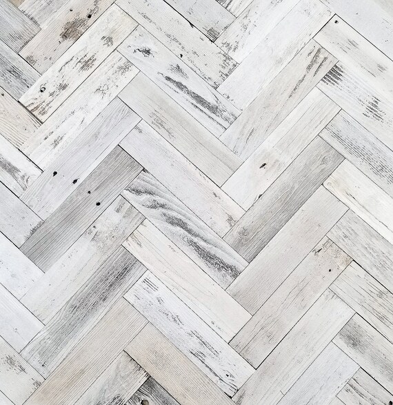 Whitewash Barn Wood Reclaimed Wall Planks In Herringbone Etsy