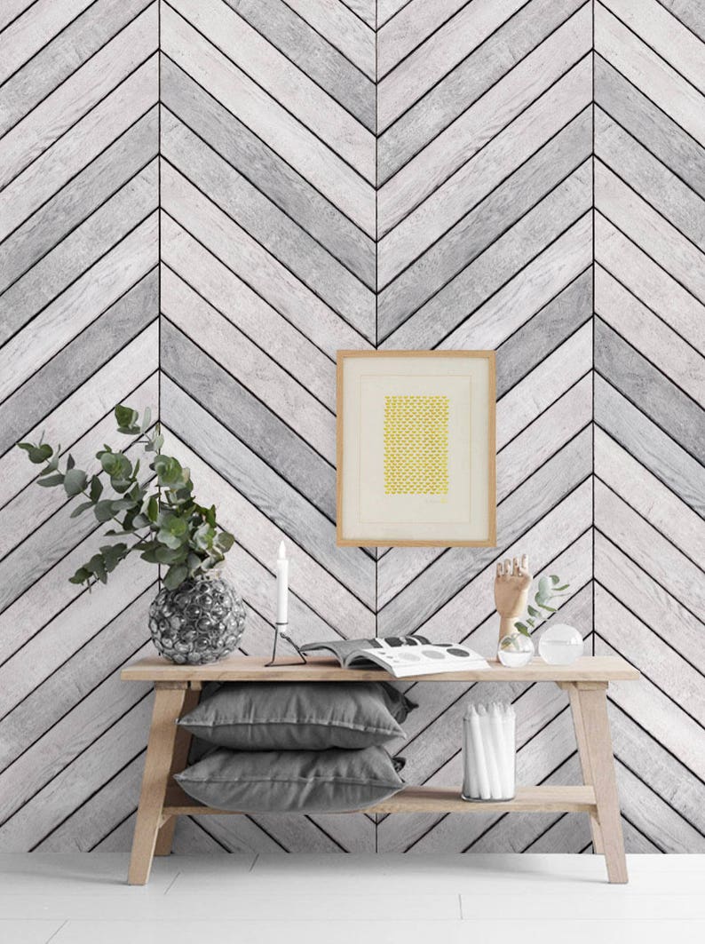 Chevron Grey White Wood Accent Wallpaper Grey White Wood Etsy