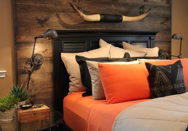 Master Bedroom With Wood Accent Wall Rustic Bedroom Dallas